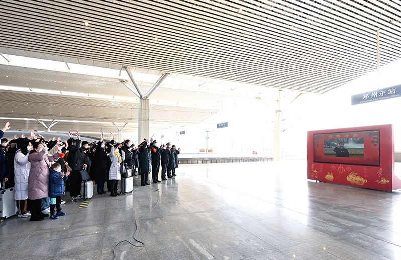 郑州东站是我国最大的高铁站之一,今年春运期间预计旅客发送量337万人。习近平通过视频连线看望慰问铁路客运干部职工。在东站一站台,郑州东站站长汇报车站春运总体情况。习近平又详细询问车站现在每天的客流量是多少?防疫措施落实得怎么样?春运治安采取了哪些措施?嘱咐他们精心组织调度,严守安全底线,确保广大旅客安全出行。月台上的旅客看见总书记,争相赶到镜头前,向总书记问好。习近平亲切询问他们是回家过年还是外出旅游,叮嘱他们注意旅途安全。习近平指出,春运是关系人民群众切身利益、关系经济发展和社会稳定的一件大事。今年春运是疫情防控进入新阶段后的第一个春运,客流量大幅回升。交通运输部门要坚决贯彻落实党中央要求,提升保通保畅能力,确保人民群众平安健康出行,确保重点物资运输畅通有序。要坚持底线思维,加强对极端恶劣天气的监测和预警,深入开展安全隐患排查治理,坚决遏制重特大安全事故发生。要加强对出行相对集中的务工流、学生流的服务引导,确保他们节前安全返乡、节后顺利返岗返校。要严格落实各项防控规定,最大限度降低交叉感染概率,保障旅客身体健康。习近平强调,长期以来,交通运输系统的干部职工埋头苦干,担当奉献,功不可没。春节期间,许多同志要坚守岗位。习近平代表党中央,向交通运输系统的广大干部职工致以新春的祝福,并祝广大旅客旅途顺利。