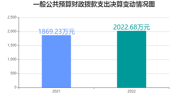 2022年度一般公共预算财政拨款支出2,022.68万元,占本年支出合计的96.54%。与2021年度相比,一般公共预算财政拨款支出增加153.45万元,增长8.21%。主要是乡村振兴项目有所增加。