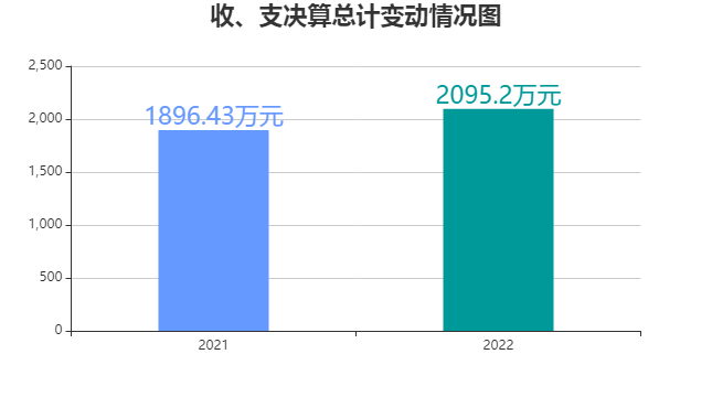 2022年度财政拨款收、支总计均为2,095.2万元。与2021年度相比,财政拨款收、支总计各增加198.77万元,增长10.48%。主要是乡村振兴项目有所增加。