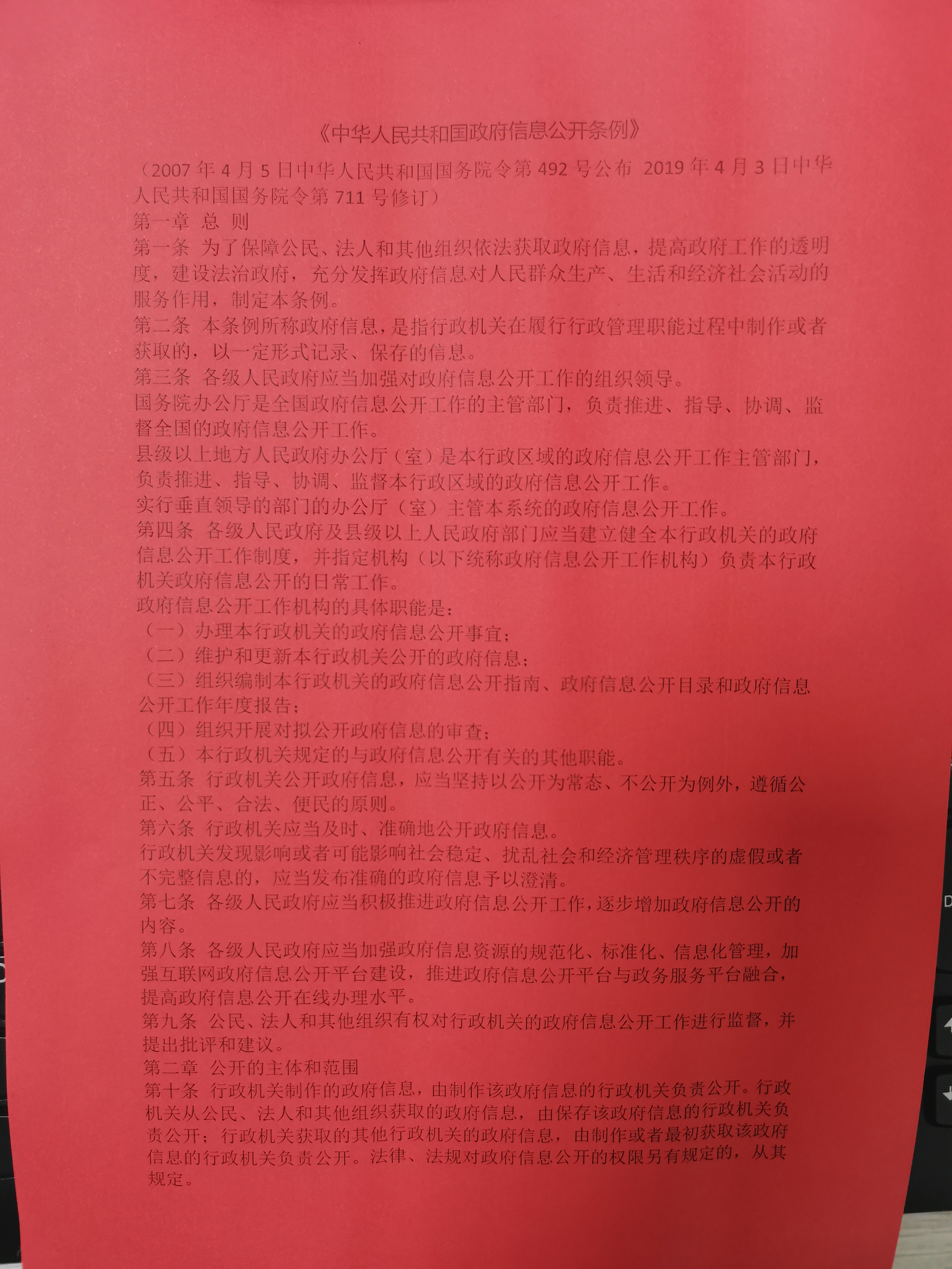 二、组织学习培训。通过镇村两级会议组织全体镇村干部学习新《条例》,并进行解读,归纳总结新《条例》与之前版本的不同,将新《条例》中修订的信息公开新要求融入到实际工作中,进一步深化政务公开工作。