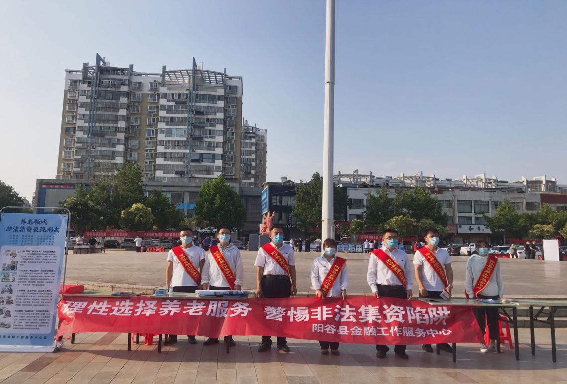 为深入贯彻打击整治非法集资及养老诈骗专项行动要求,切实提高老年人的法治意识和识骗防骗能力,维护老年人的合法权益,全面加强打击整治养老诈骗、打击治理电信网络诈骗、非法集资的社会宣传,6月15日下午,阳谷县金融工作服务中心在县中心广场结合迎接党的二十大——弘扬平安法治精神暨打击整治养老诈骗集中宣传活动,开展一系列防范非法集资及养老诈骗宣传活动。