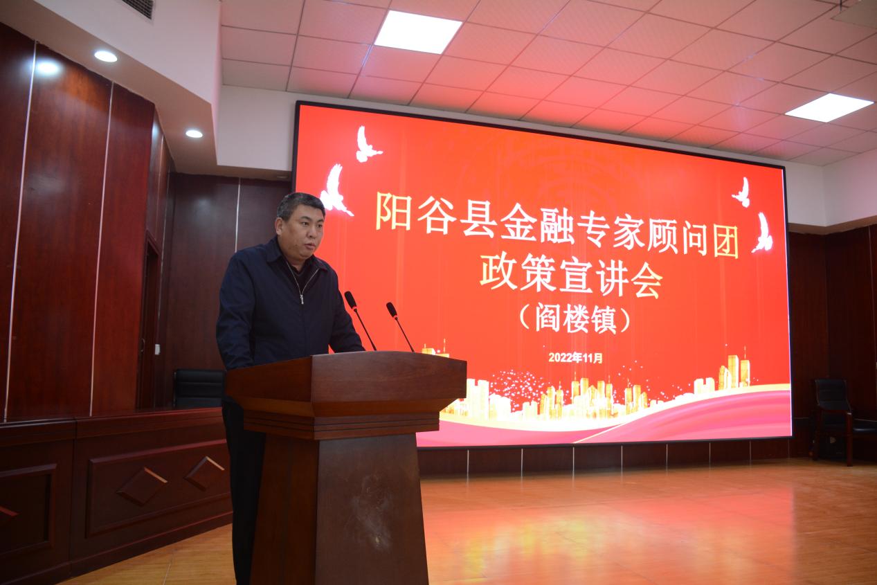 11月9日,阳谷县金融专家顾问团政策宣讲会在阎楼镇召开。会议由县金融工作服务中心主任杨善峰同志主持,县政府党组成员、副县长张立国同志出席并做重要讲话。参加会议的还有阎楼镇党委书记李森同志、我县12家金融机构及近100家小微企业、农民合作社、种养大户、个体工商户等各类市场主体。