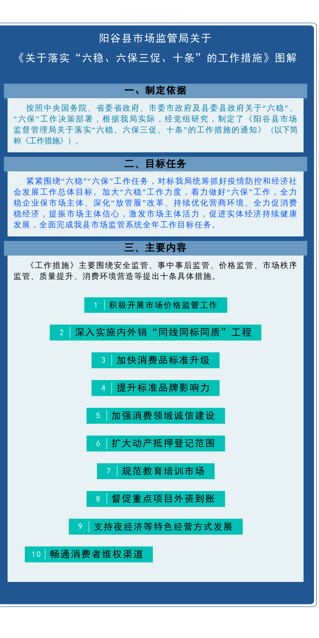 图解《阳谷县市场监管局关于落实“六稳、六保三促、十条”的工作措施》