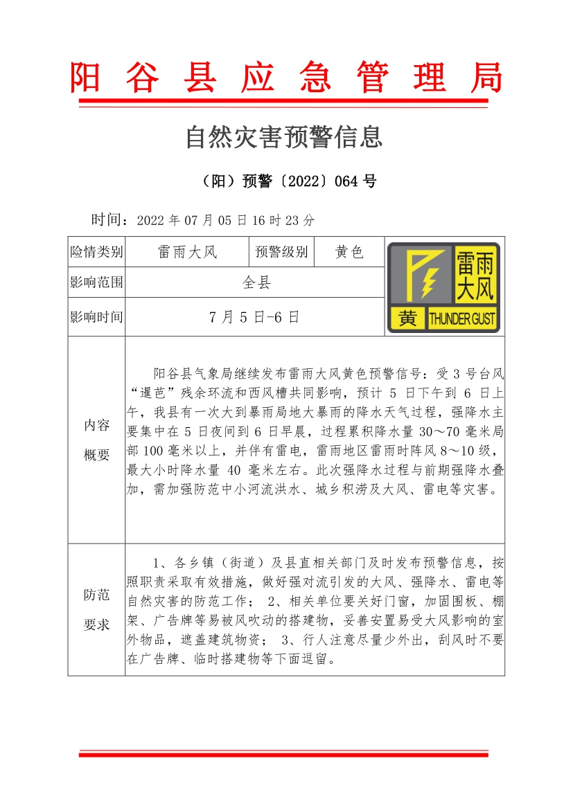 预警〔2022〕064号