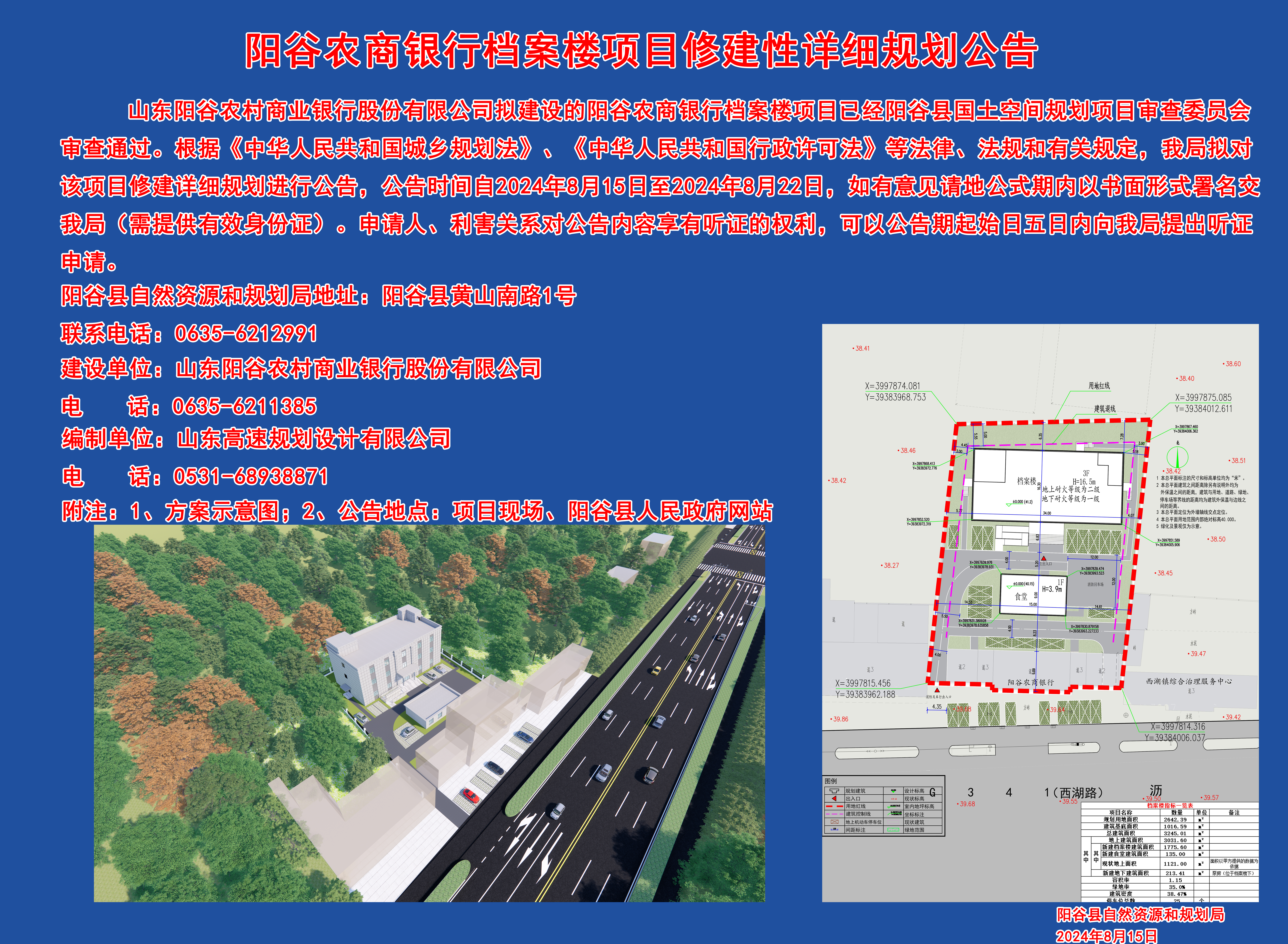 阳谷农商银行档案楼项目修建性详细规划公告附件
