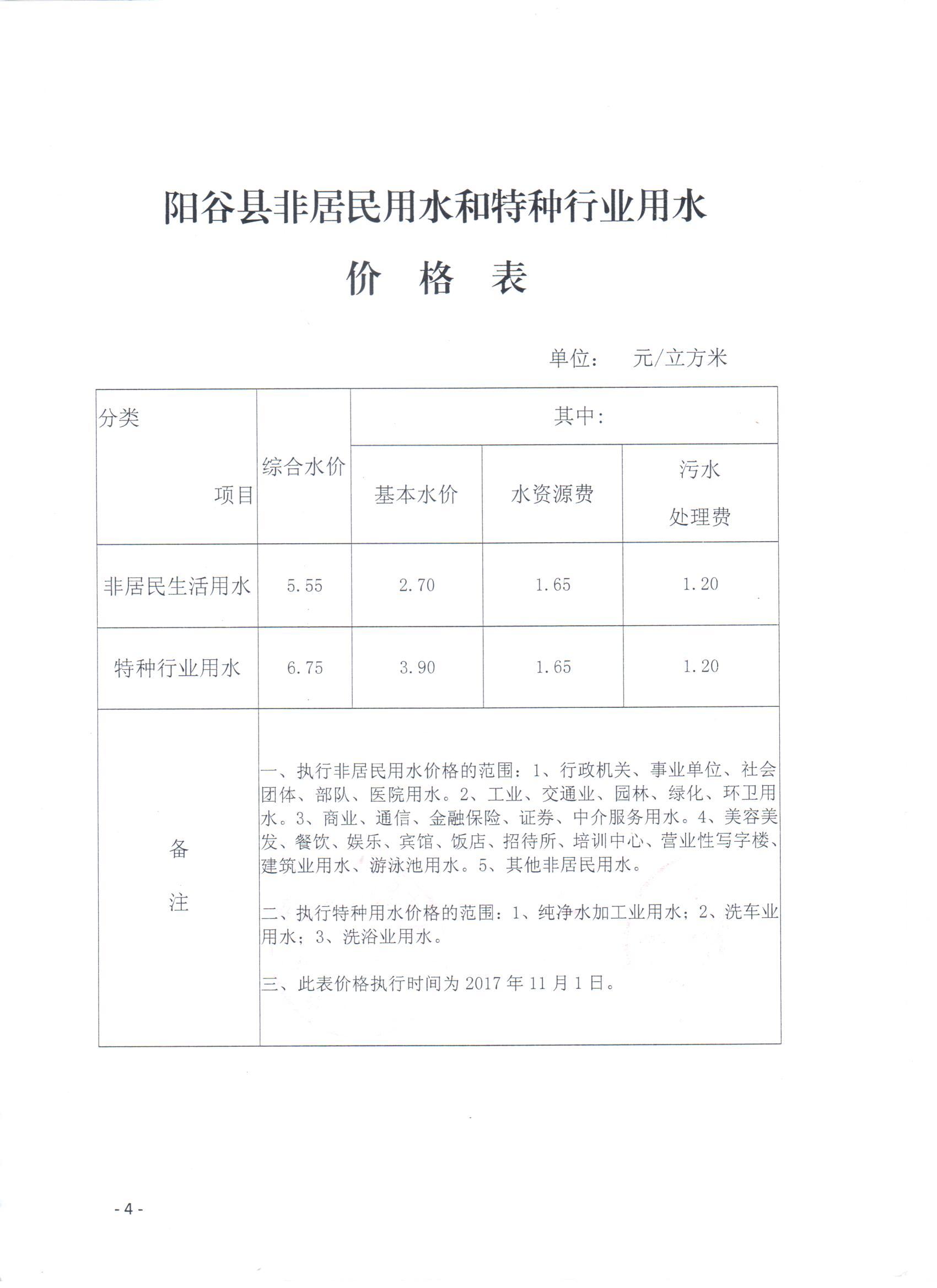 非居民用水和特种用水价格表及收费依据