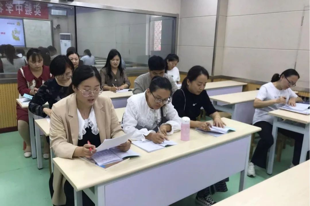 示范课后,学科主任组织各学科组进行了评课研讨。执教老师介绍自己的教学设计思路,反思自己的教学得失。听课教师各抒己见,理性分析课堂教学中的优点与不足,探讨改进措施,思维在交流中碰撞,迸发出智慧的火花。